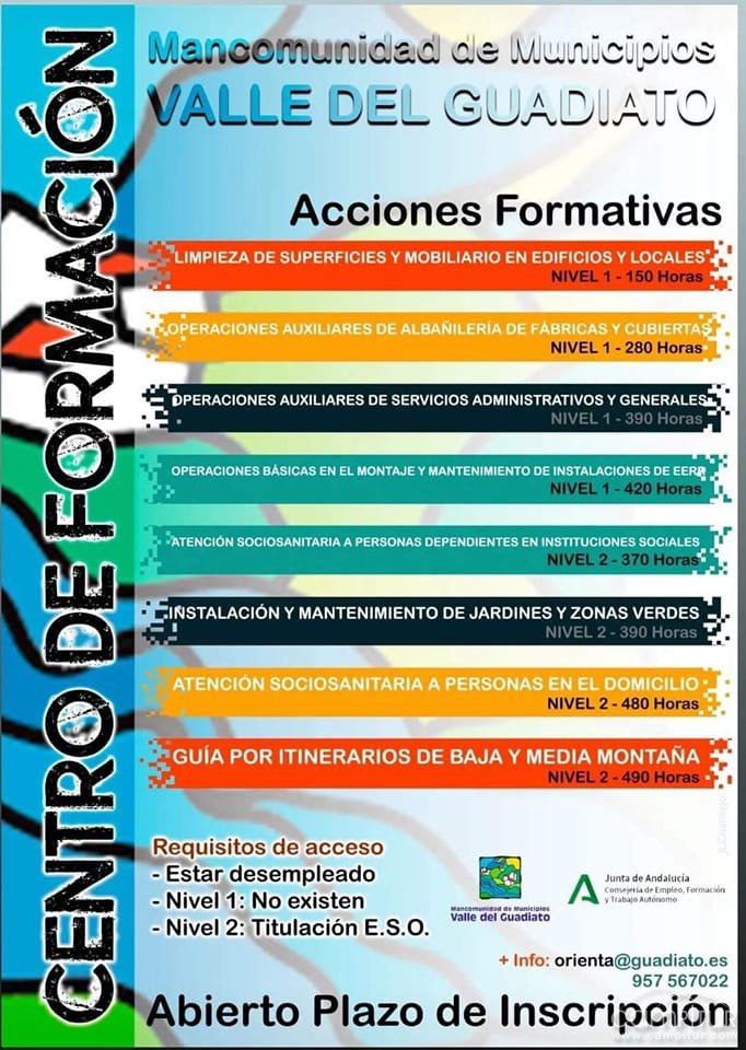 La Mancomunidad de Municipios Valle del Guadiato ha resultado beneficiaria de un total de ocho acciones formativas, las cuales se pondrán en marcha próximamente en el Centro Comarcal de Formación Guadiato, ubicado en Peñarroya-Pueblonuevo, con un presupuesto global de 348.679,98 euros
