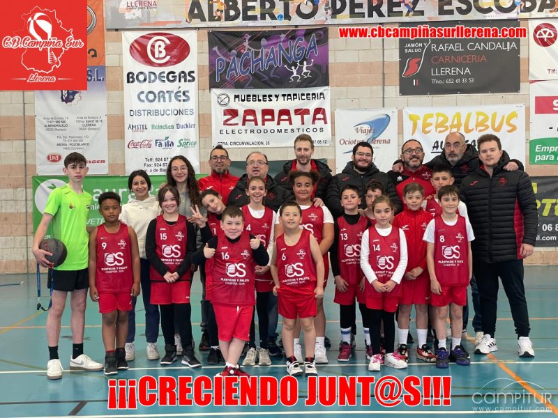 El pasado domingo 30 de marzo de 2025 se vivió la FIESTA del BALONCESTO BASE en el "ALBERTO PÉREZ", que disfrutó nuestro equipo BENJAMÍN MIXTO, en la convivencia de minibásket organizada por la Federación Extremeña de Baloncesto y el C.B. CAMPIÑA SUR DE LLERENA, con la colaboración del Ayuntamiento de Llerena y la concejalía de Deportes. Agradecer una vez más, a todos los que han hecho posible que la concentración se desarrollase con éxito: gestor y trabajadores de las instalaciones (de forma muy especial a RAFAEL LLORENTE), a los distintos equipos, a los árbitros y oficiales de mesa (voluntarios del club). En toda la logística y labores arbitrales, enorme agradecimiento a los entrenadores de nuestro club presentes y a los canteranos del club voluntarios: Paula Martín, Mariela Cajaraville, Andrea Carrillo, Basma Mohssine y Manuel Robina. Seis equipos participaron y seis partidos se jugaron en total, contando con un total de 75 niños y niñas. Se consiguió el principal objetivo de estas convivencias, que está por encima de los resultados en el marcador. Ese objetivo es DISFRUTAR JUGANDO A BALONCESTO.  Agradecer a todos los familiares, tanto de nuestros equipos como de los visitantes, su numerosa presencia en las gradas y su comportamiento ejemplar animando a todos los equipos.