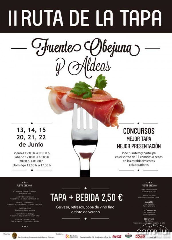 En esta ocasión, la II Ruta de la Tapa de Fuente Obejuna y Aldeas se celebrará durante los dos próximos fines de semana, esto es, durante el 13,14 y 15 y el 20,21 y 22 de junio, viernes, sábado y domingo, respectivamente. Además, participarán en la misma un total de 11 establecimientos, 8 de ellos de Fuente Obejuna, y el resto de Argallón, La Coronada y El Porvenir.