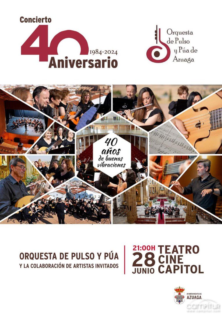 Este año, la Orquesta de Pulso y Púa de Azuaga celebra su 40 aniversario desde su formación en 1984. Para conmemorar este hito, el próximo viernes 28 de junio, la orquesta ofrecerá un concierto especial en el que harán un recorrido musical por sus cuatro décadas de historia.