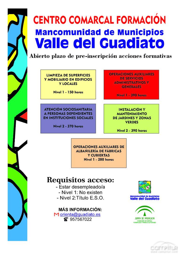 Desde el Centro Comarcal de Formación de la Mancomunidad de Municipios Valle de Guadiato, informan de la apertura del plazo de preinscripción para las acciones formativas previstas para el año 2022